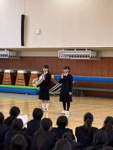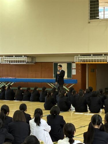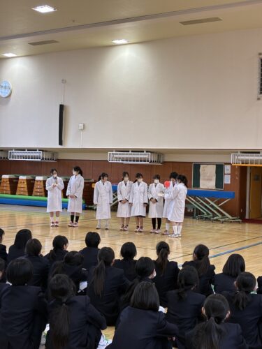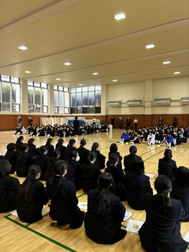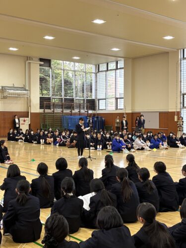 その後、校長先生から中学1年生に向けて、「新しい環境で不安もあると思うが、先輩たちは皆同じ経験をしてきており、温かく支えてくれるので安心してほしい」という話がありました。