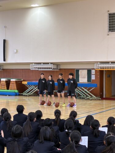 中学校では、対面式、引き続き部活動紹介が、第2体育室で実施されました。
